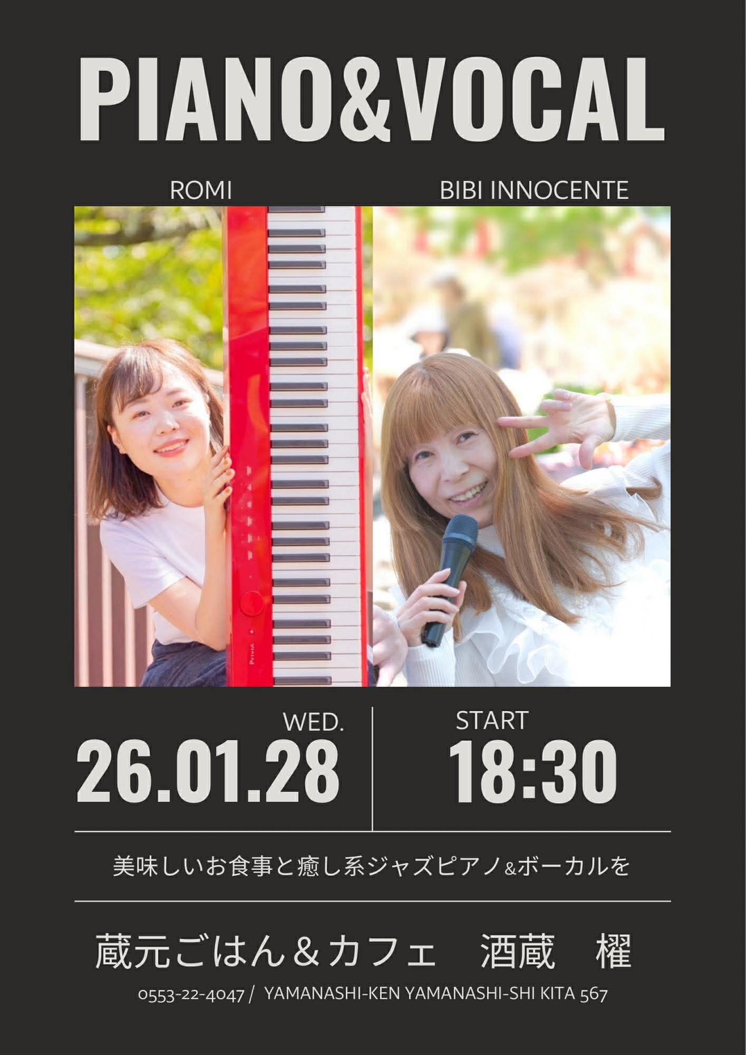 癒し系ジャズピアノ&ボーカル 1/28(水) 18:30開演