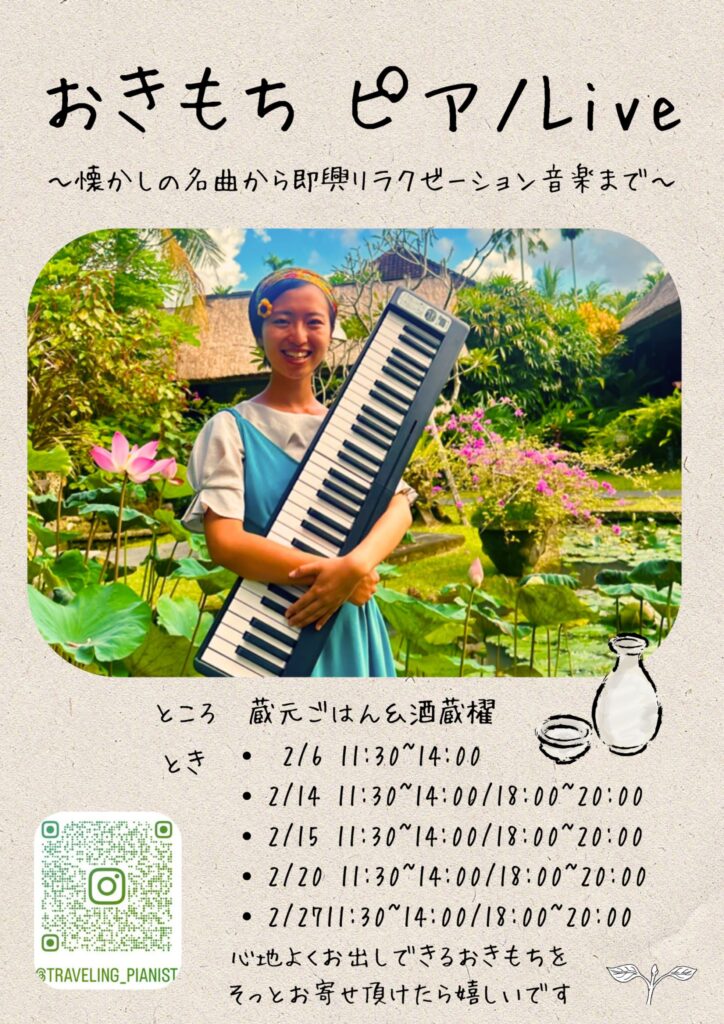 おきもち ピアノLive 2/6、2/14、2/15、2/20、2/27