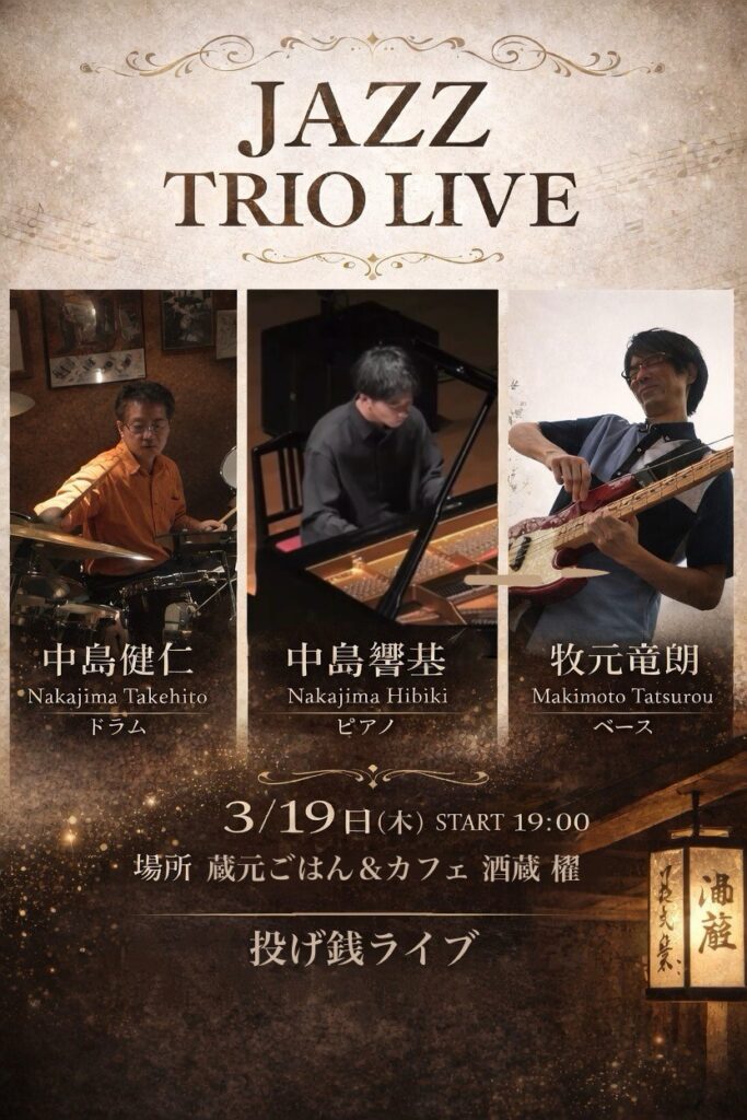 JAZZ TRIO LIVE 3/19(木) 19時開演