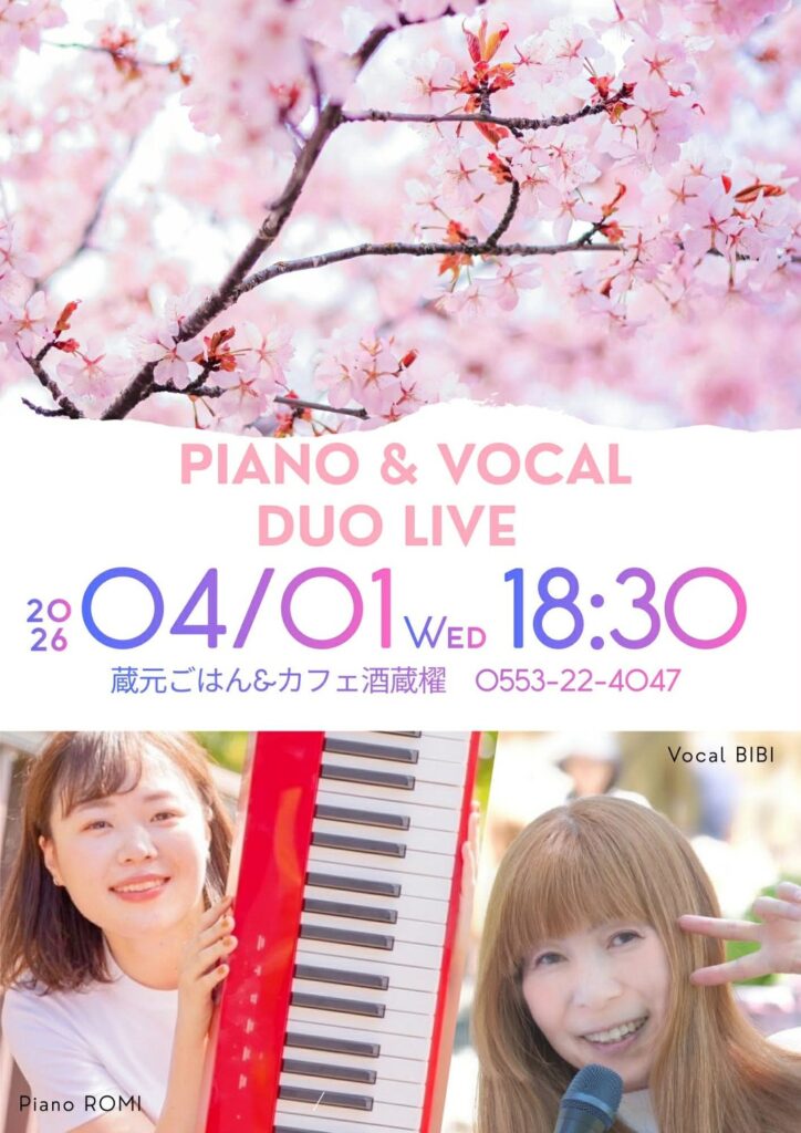 PIANO & VOCAL DUO LIVE 4/1(水) 18:30開演